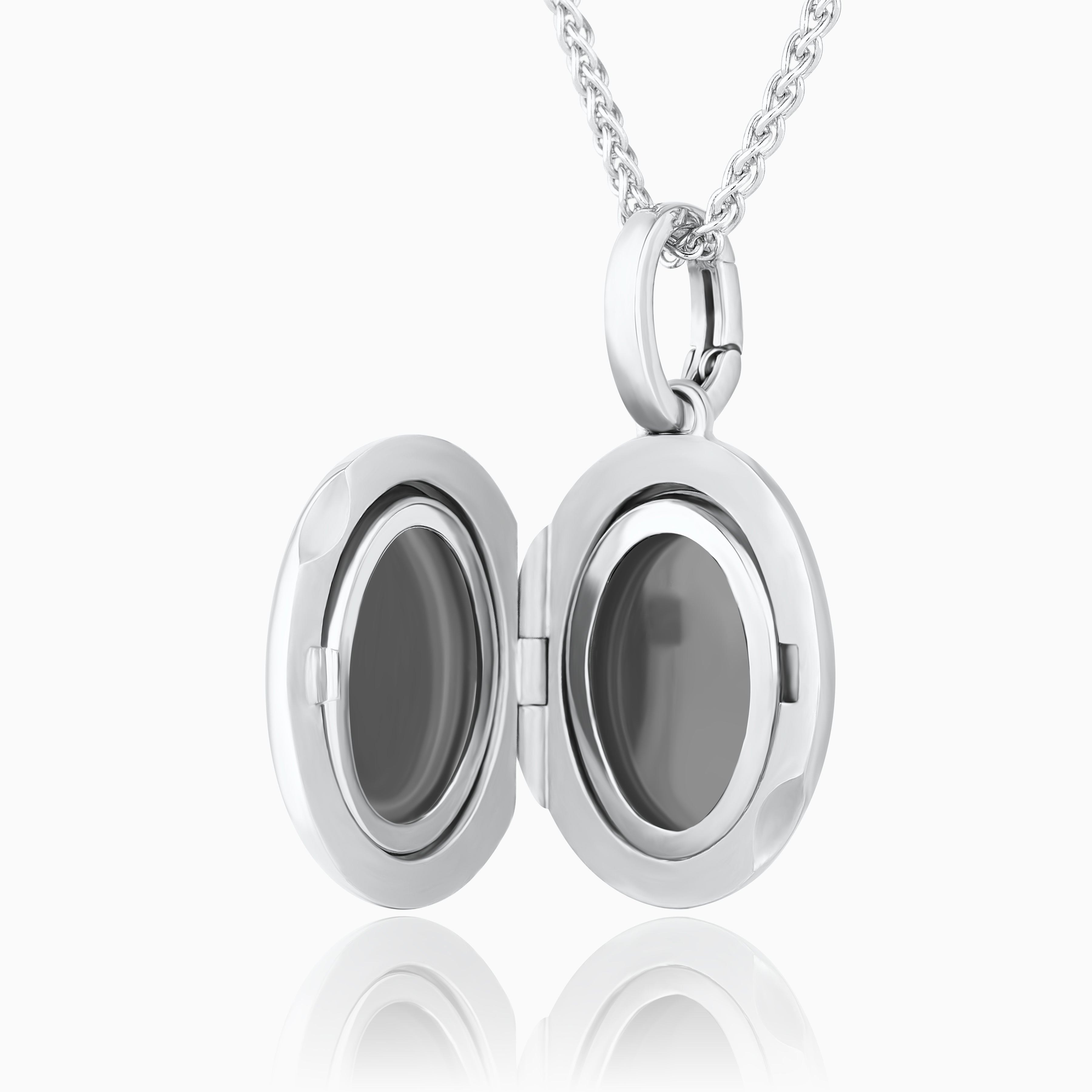 A subtle and stylish 18 ct white gold oval locket star set with a sparkling diamond.