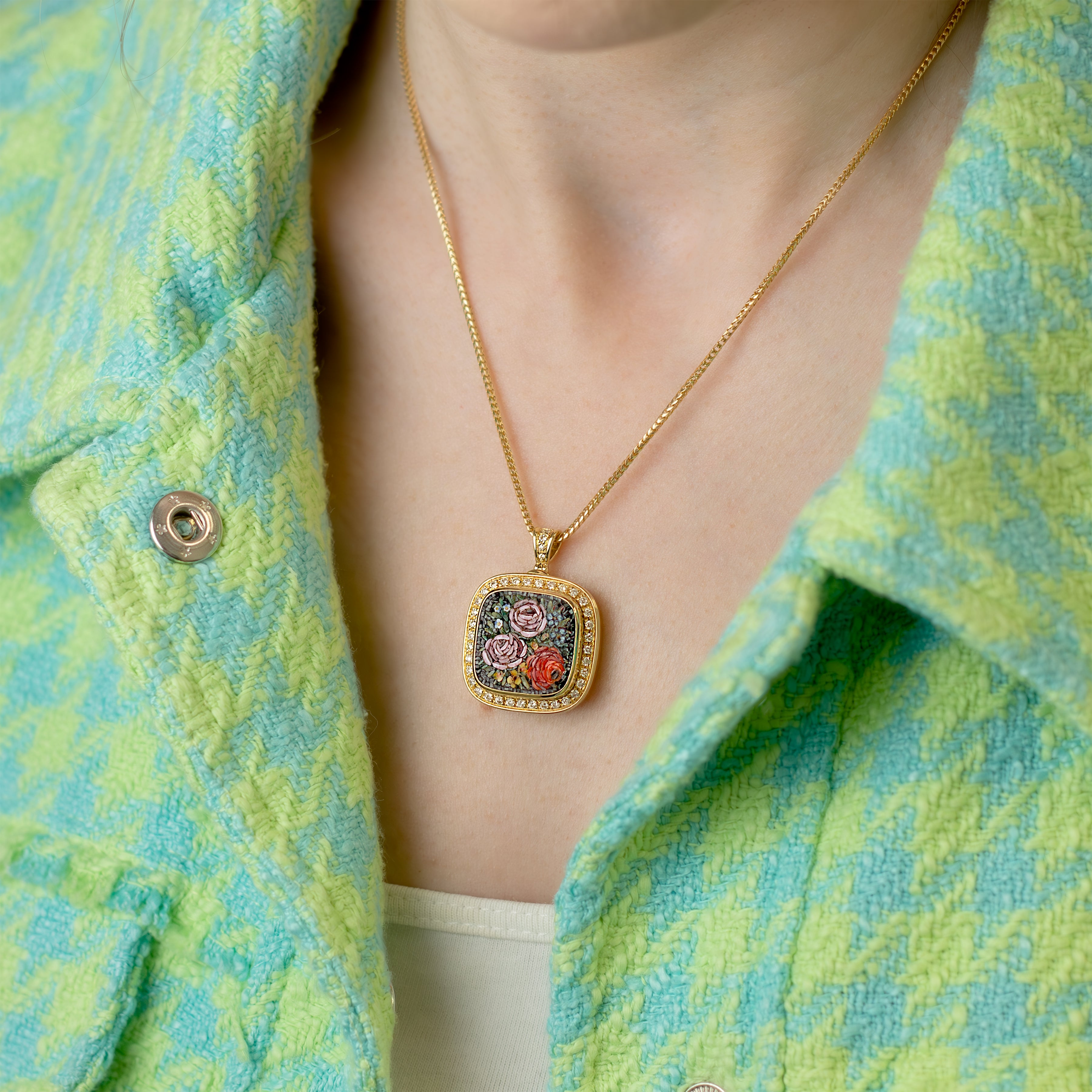 The art of micromosaic goes back to Roman times, and is still practised today in Italy, where this locket has been created.