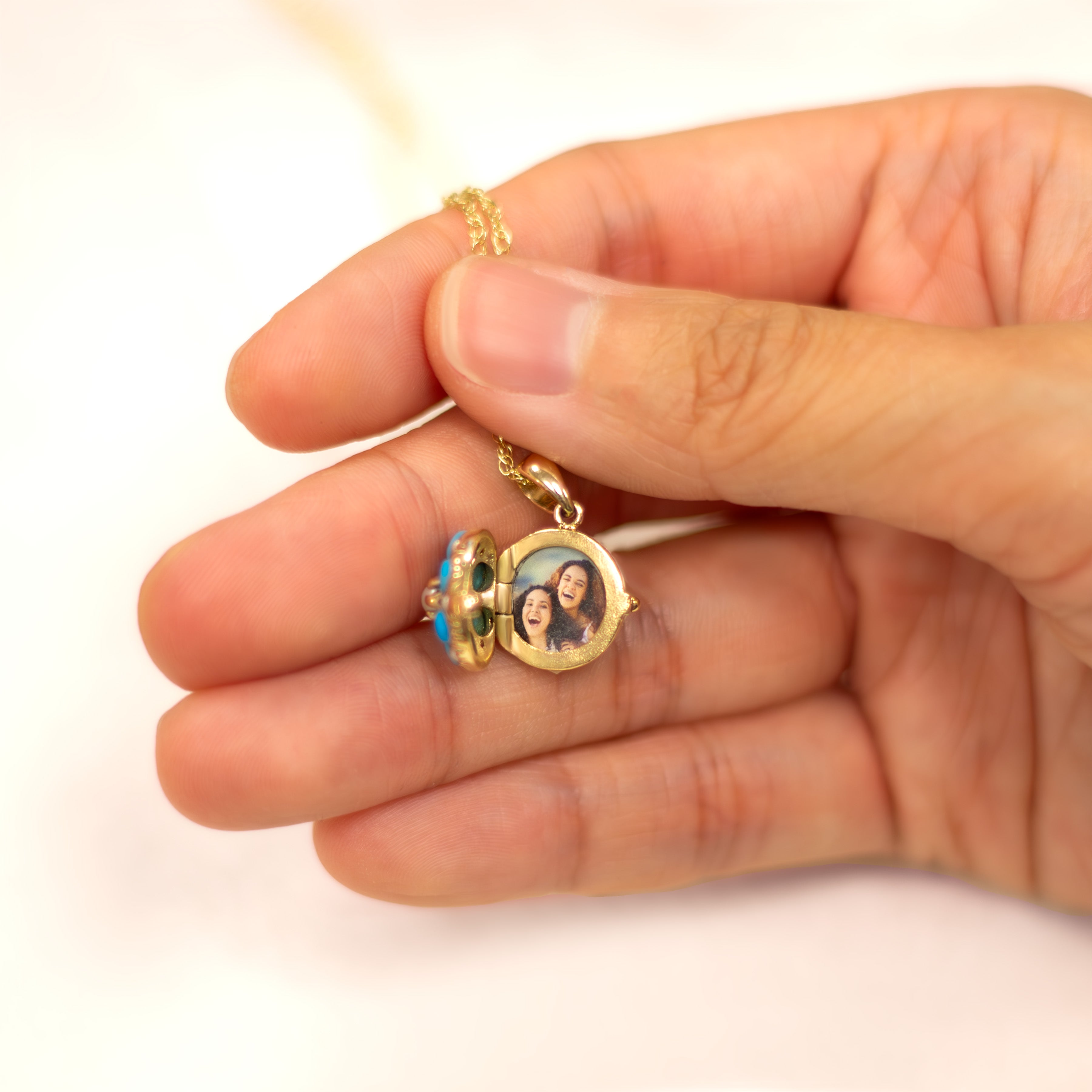 The locket is shown with a matching gold chain for illustration purposes, but the chain is not included by default. If you would like to purchase a chain, please select your preferred option from the drop-down menu below.
