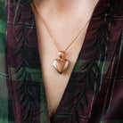 This is a lustrous hand made petite 18 ct rose gold heart-shaped locket. A timeless, romantic gift. The locket opens to reveal 2 gold-framed and lined photo compartments.