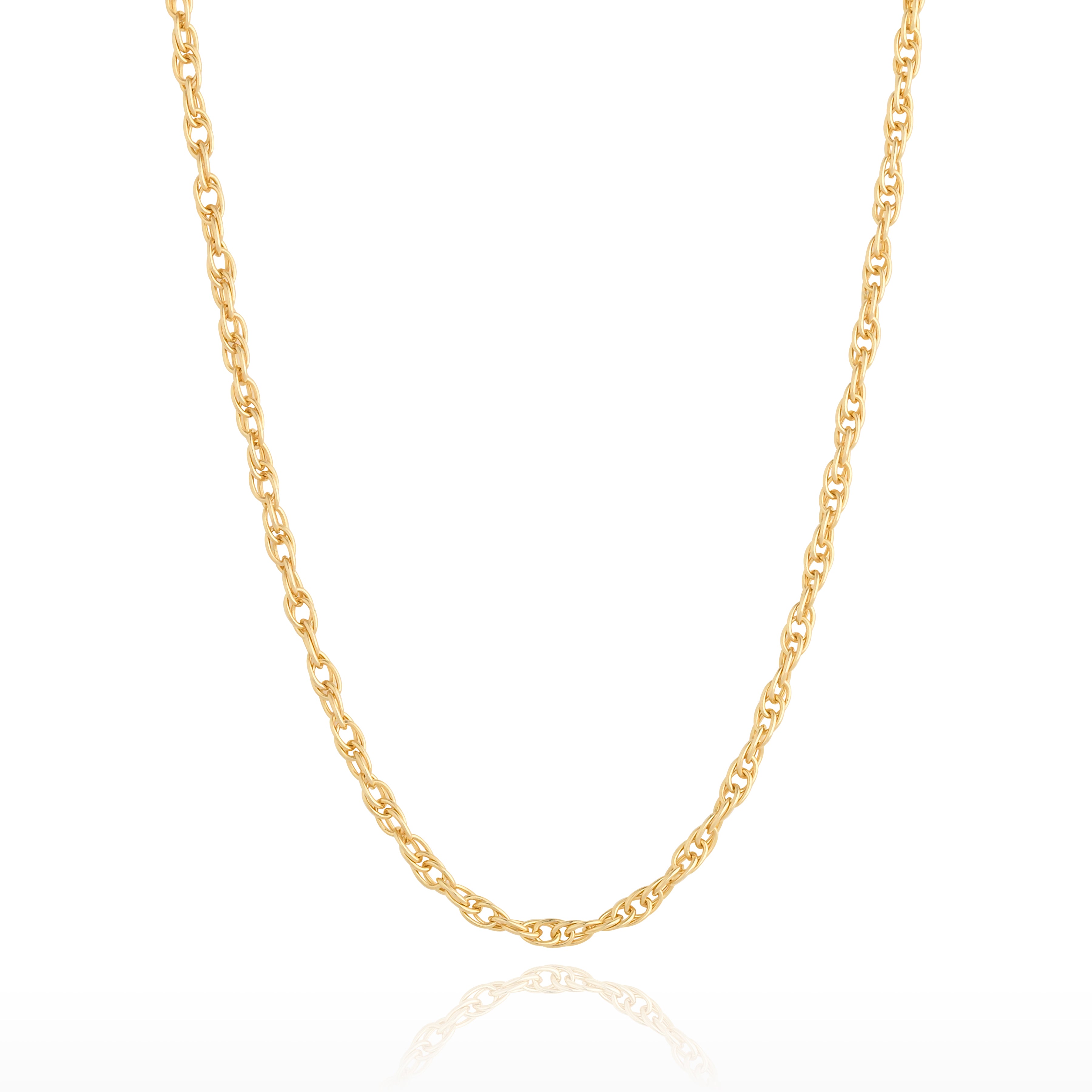 Rope chain consists of small links that have been carefully woven together to form twisted, rope-like lengths of chain. There are many versions of the rope chain, each varying in intricacy and complexity. Larger rope chains are often worn to draw more attention to the rope pattern. However, smaller chains can also be worn with pendants or stacked for a layered look.