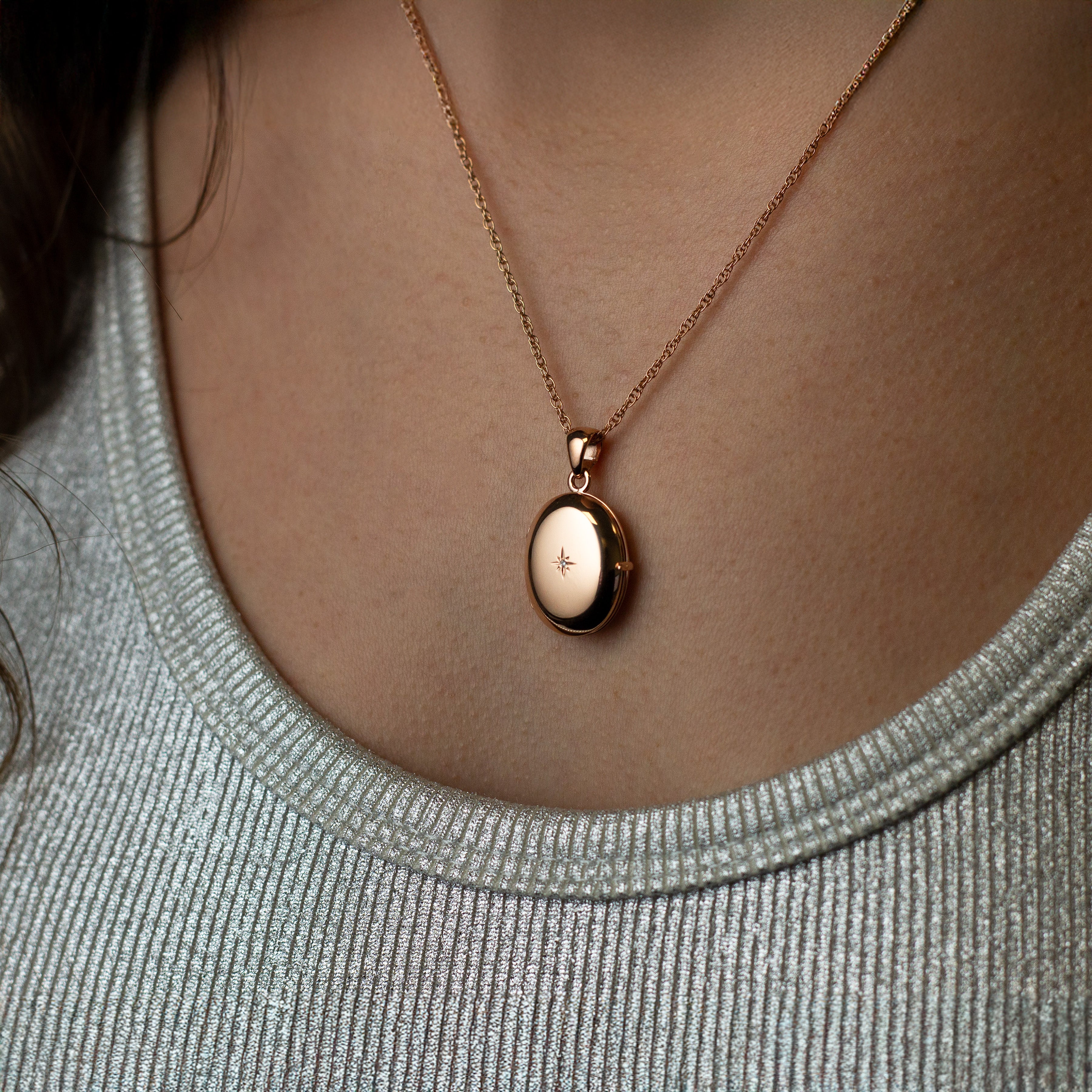 The locket is shown with a matching gold chain for illustration purposes, but the chain is not included by default. If you would like to purchase a chain, please select your preferred option from the drop-down menu below.
