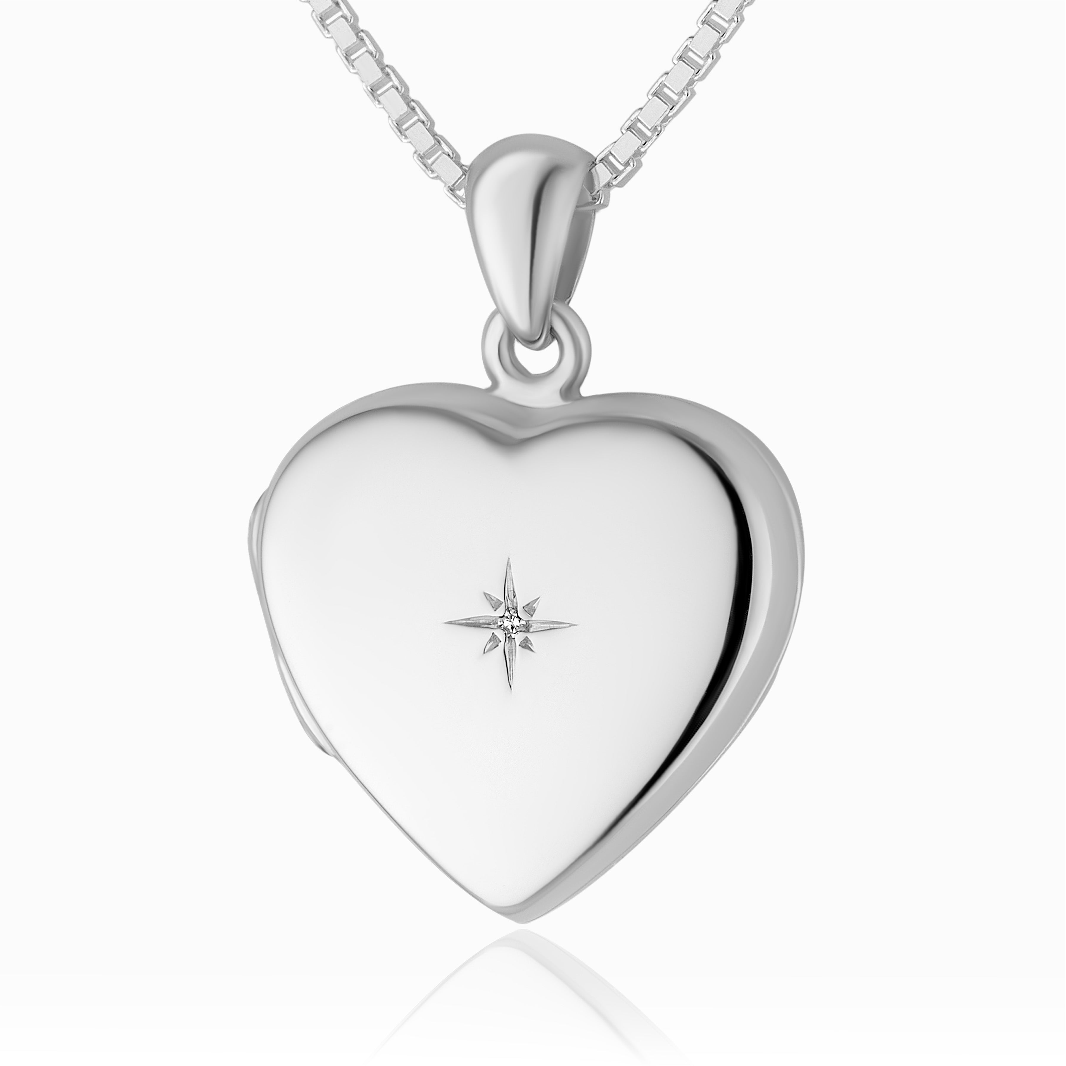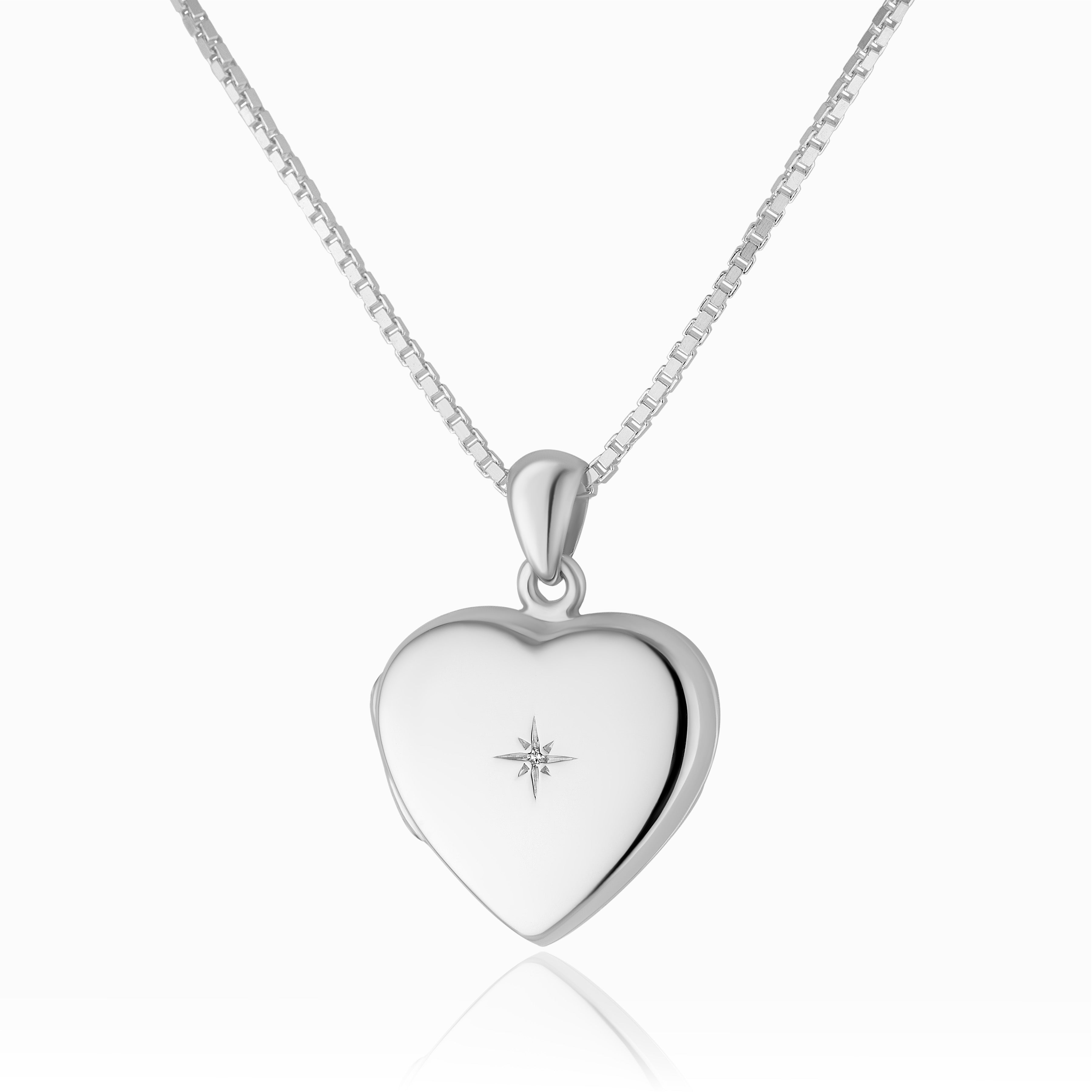 The dainty diamond at the centre of this sterling silver polished heart locket adds an extra dose of sparkle to an otherwise classic shape.