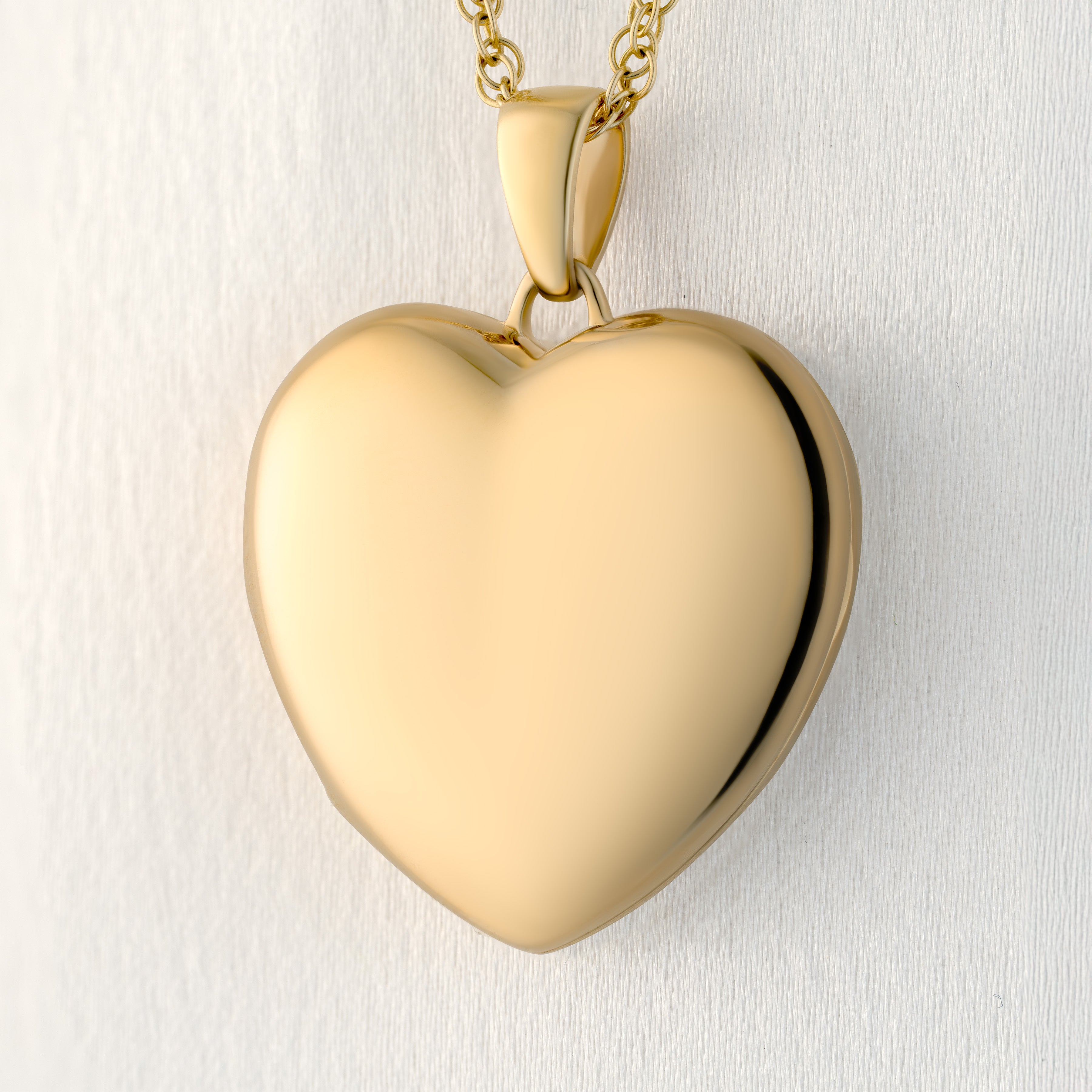The locket is shown with a matching gold chain, which is available as an optional addition.