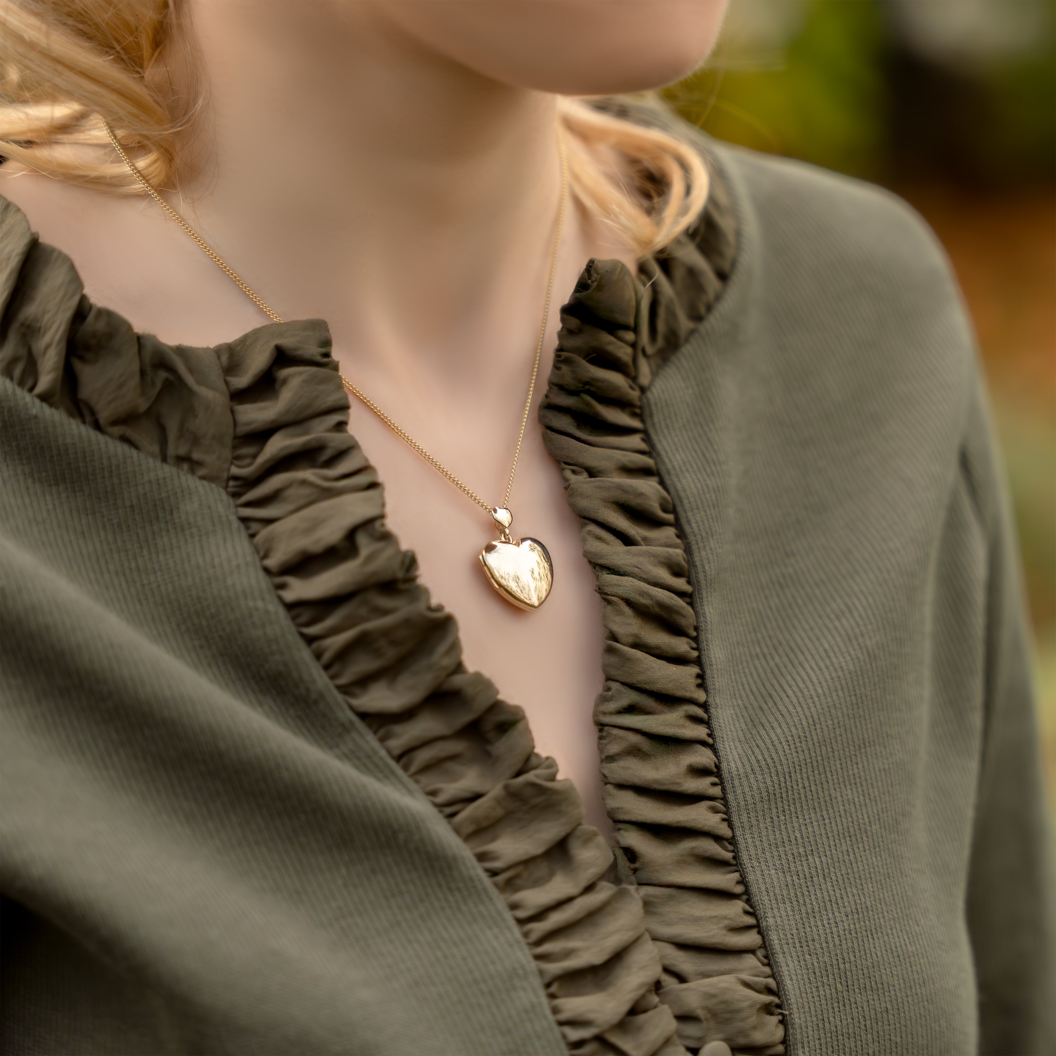 A premium 9 ct gold heart locket, with a matching heart-shaped bail.