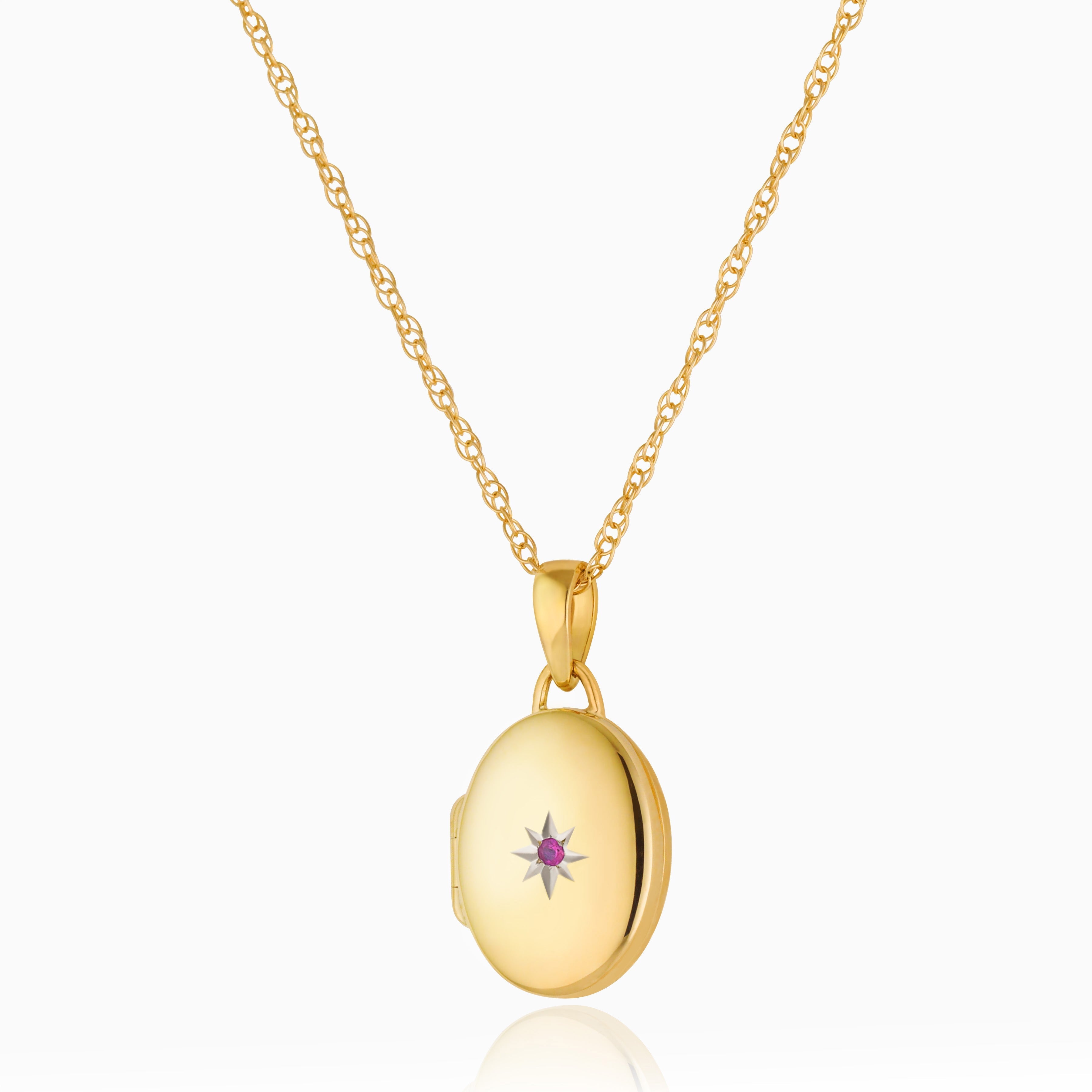 A very sweet and dainty 9 ct gold oval locket star set with a real ruby.